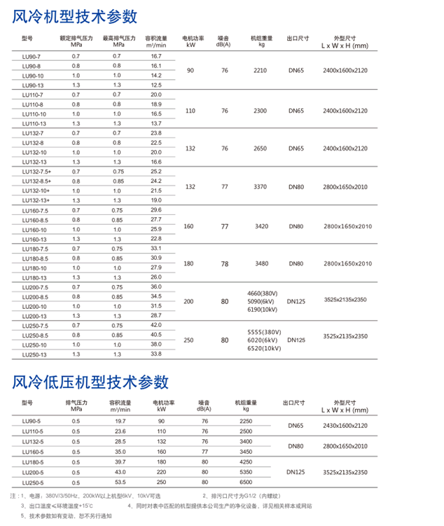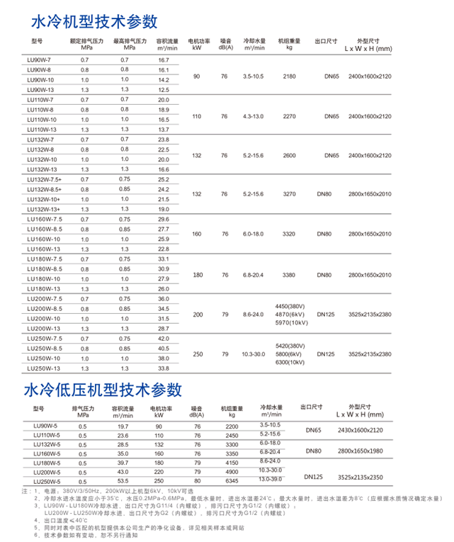 LU(90kW-250kW)系列螺杆式空气压缩机,依托集团公司先进的欧洲技术,考虑大型机组的适用范围、运行经济性、可靠性及操作维护的方便性而精心设计和组装的。配置久经考验的进口运动部件,整机运转稳定、可靠。同时,针对中国环境工况专门改进适应性强,特别适合于气量大的集中供气场所。